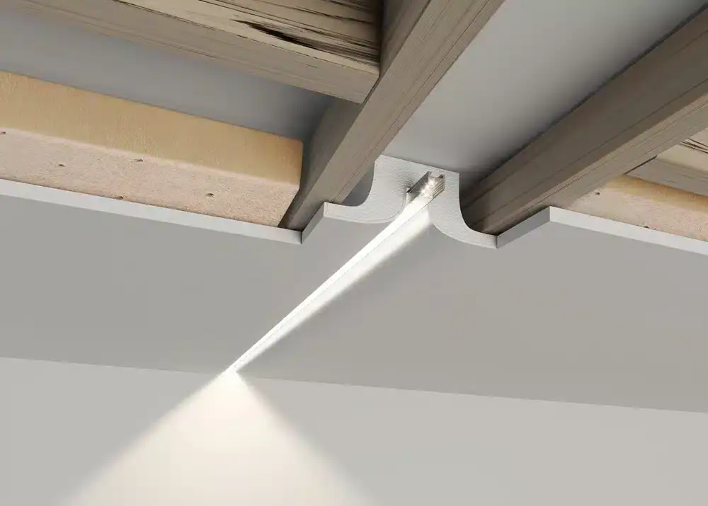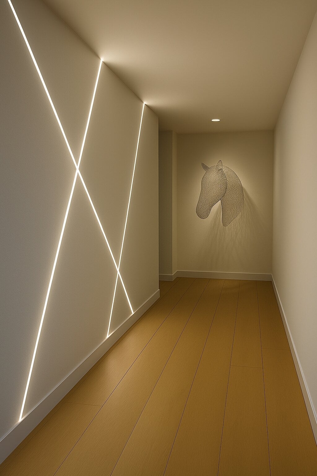 Add smooth internaly lit grooves to your walls using the SULCUS gypsum profile. It is supported on 2×3in. joists or studs, and will level out flush with 5/8 in. gypsum panels, with a little drywall tape and mud. Paint to match your decor, and enjoy the smooth look as well…