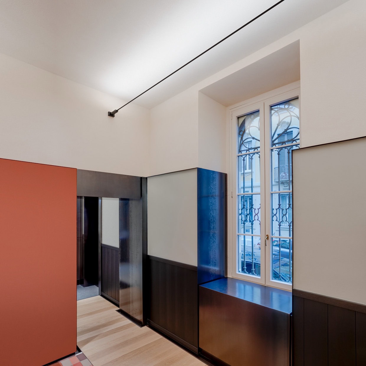 Infinito is Davide Groppi's award winning system .An ultra-thin strip of special stainless steel just 18 mm wide cuts the space to produce indirect light. Infinito can be adapted to various situations, stretched from wall to wall or ceiling to floor.