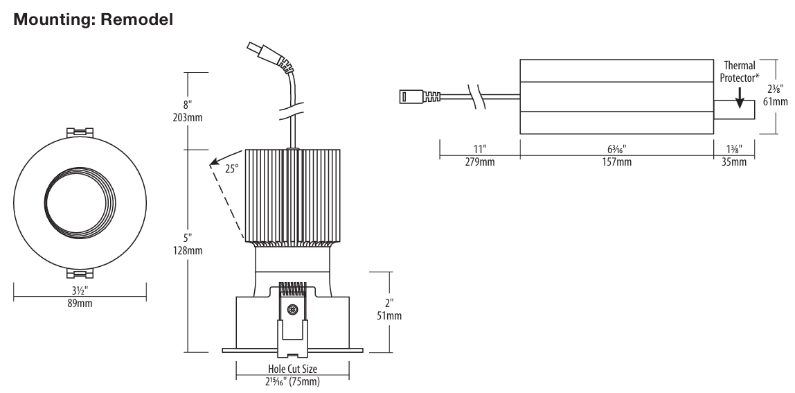 • Dim-to-Warm Available with high powered LED chip that dims from 3000 K to 2000 K with a typical 90 CRI.