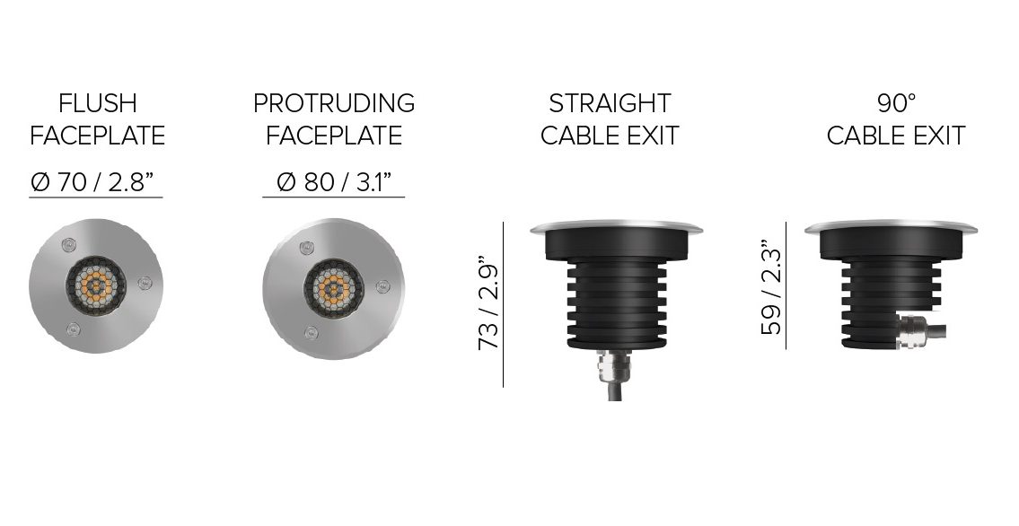 • Built in protection from water infiltration and moisture. To guarantee a tightness over time, the fixture in installed without opening the optical compartment