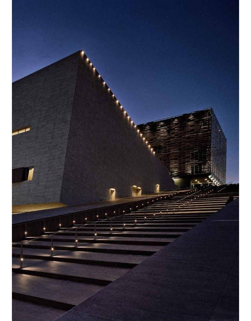 Recessed lighting fixture with asymmetrical light beam for flood or step lighting. Suitable for indoor and outdoor applications. Available in three shapes: rectangular, square and circular. Made of painted aluminum, zinc alloy and UV-resistant nanopolymer resin that ensures complete waterproofness.