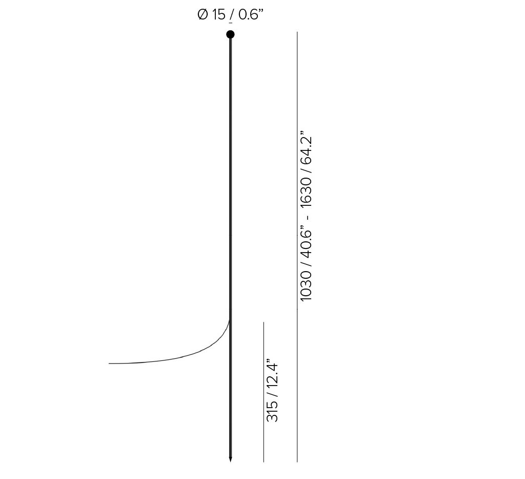 • Featuring a minimal design and hidden feeding cable, the luminaire is available in two height options: 40.6″ – 64.2″
