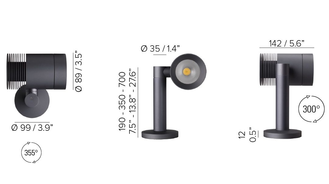 • No visible screws and feeding cable hidden into the stem, the luminaire is available in three heights: 7.5”, 13.8”, 27.6”