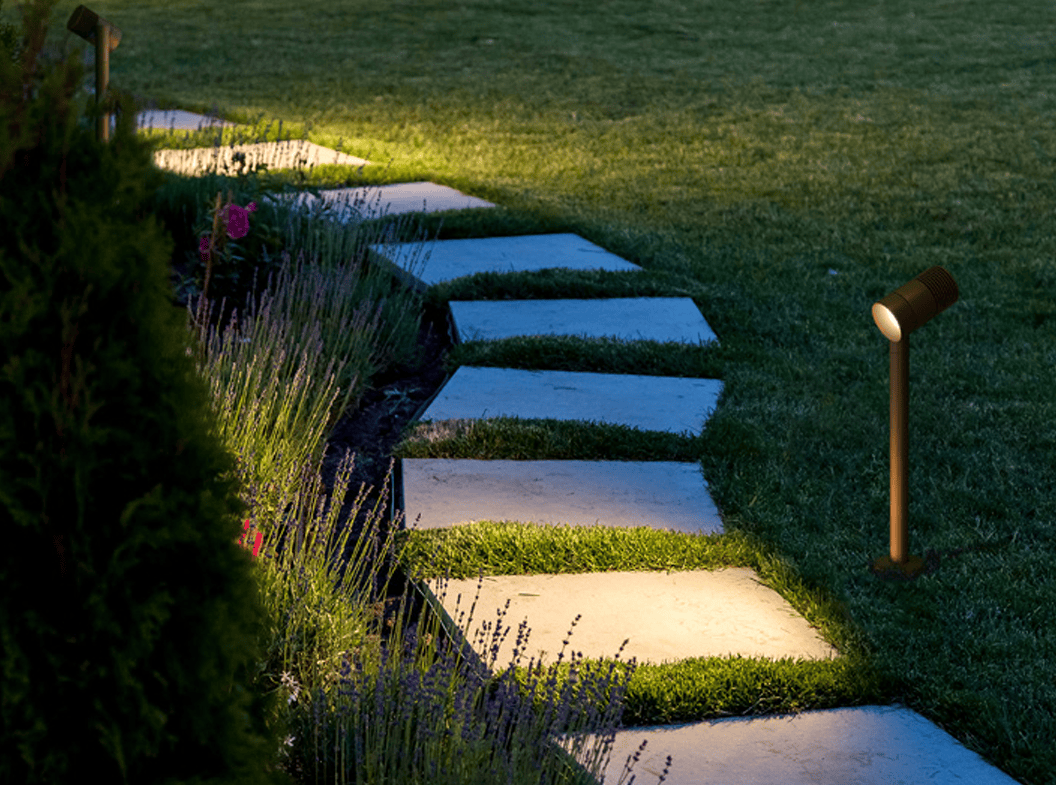 Pole light with a spotlight ideal for illuminating plants or architectural details