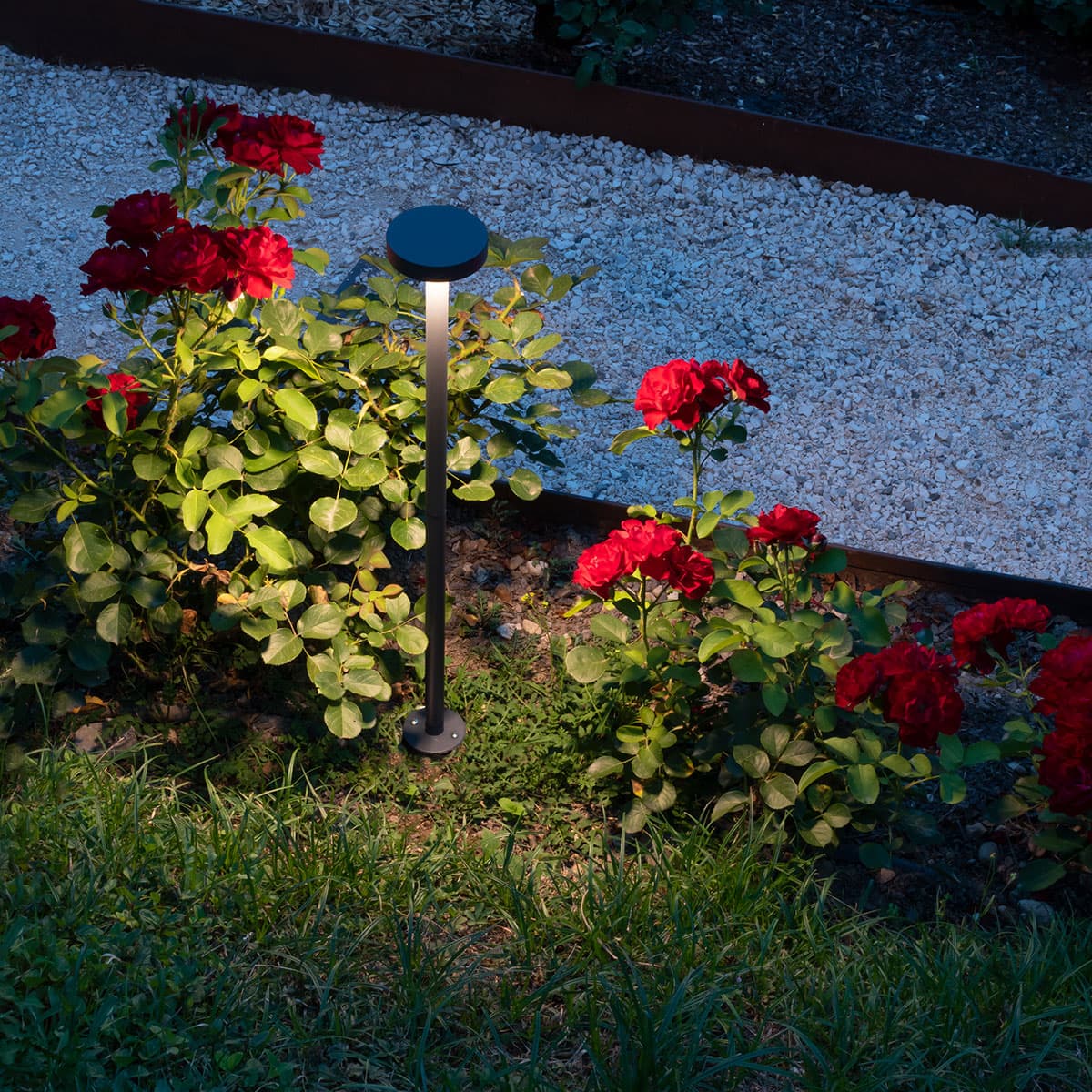 • Thanks to the design of the cap, the luminaire is glare free since the light is directed towards the ground on the surroundings beneath the luminaire