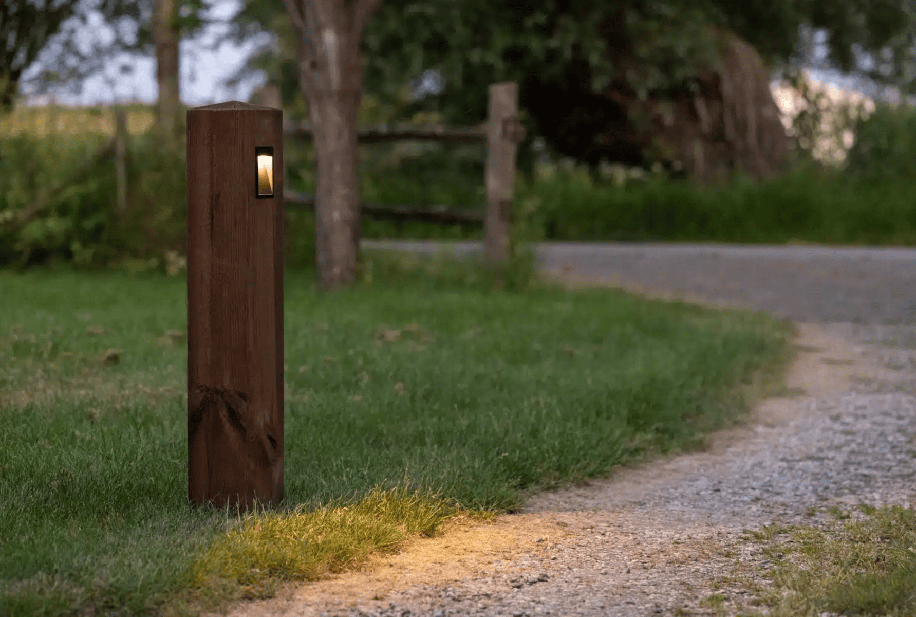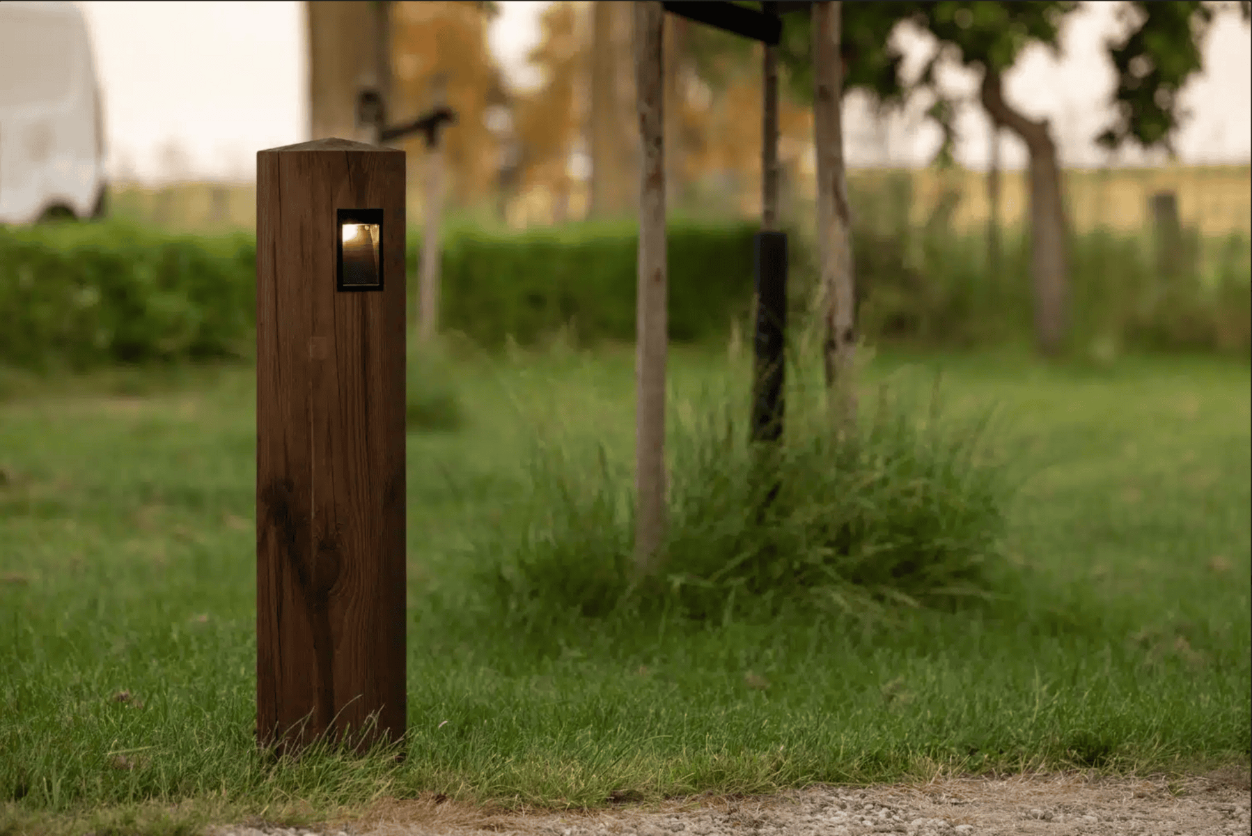 Light source: TBL path light module Available light colors: 2,700K (extra warm white), 4,000K (cool white) and amber (593nm) Wood types: Accoya, douglas (on footrest only), oak or chestnut Fixture color: Gray RAL 7016